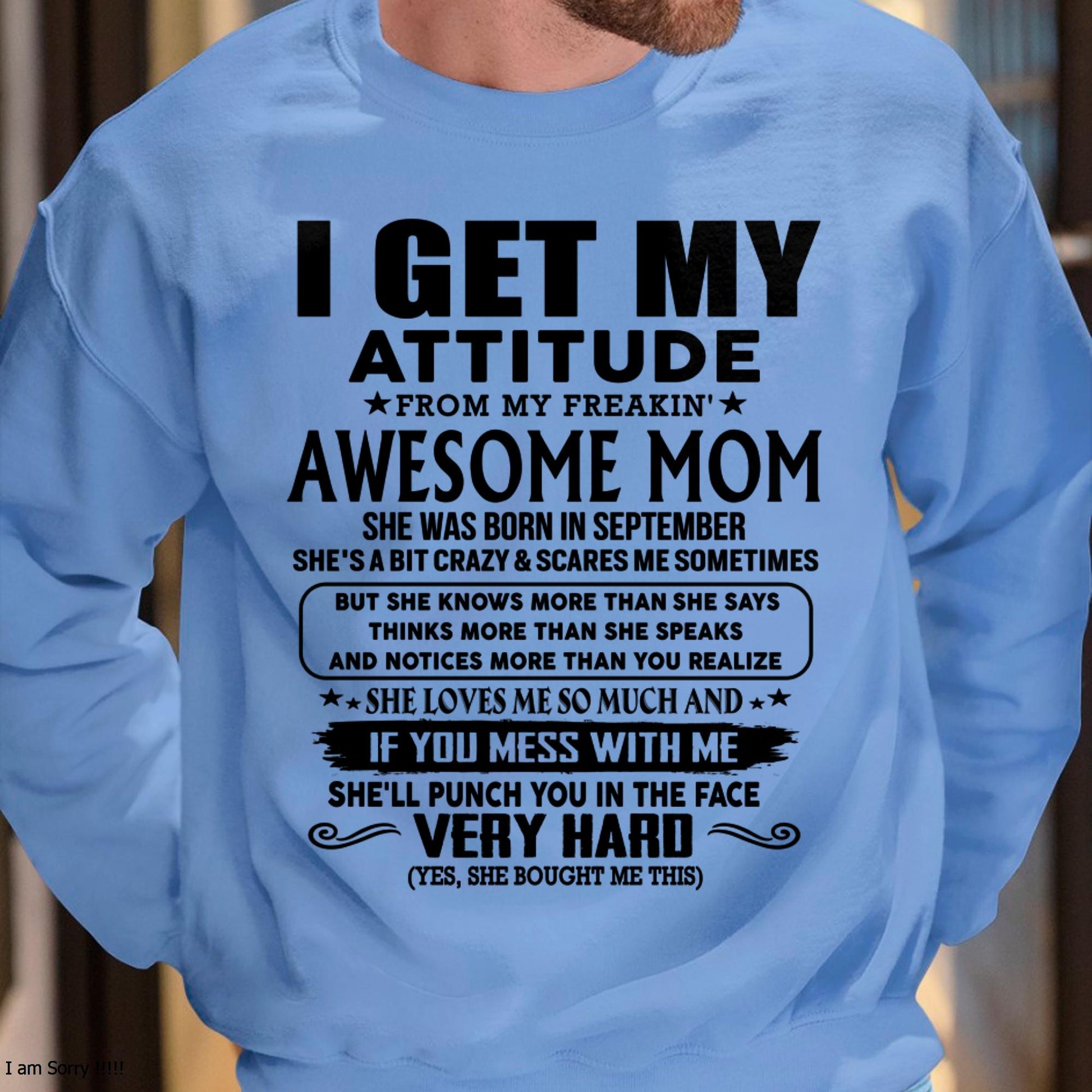 September - Thanks Mom - I GET MY ATTITUDE FROM MY FREAKIN' AWESOME MOM - Gift for Son and Daughter From Mom - ebil09 (SKU-TMD-CU-09)