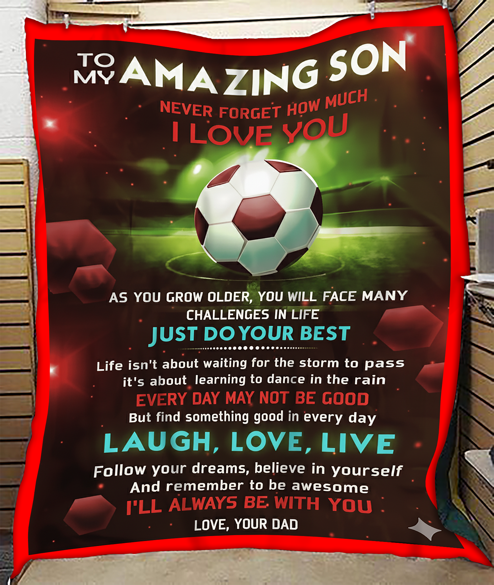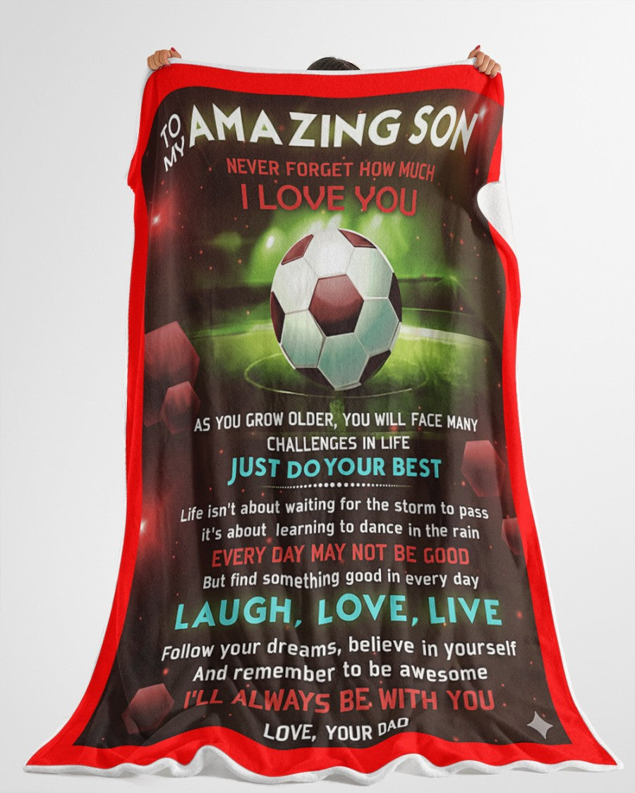 BLANKET FOR SON – COMFORT & WARMTH GIFT FROM DAD Sherpa Fleece Quilt Blanket NTTD00 (SKUB-BLK-DADRED)